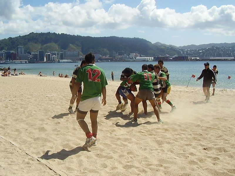 Above: In the absence of any rugby photos from this past weekend, we’ve gone back to the summer of 2007 for the headline shot! Who can remember beach rugby at Oriental Bay, won by the beach’s namesake Oriental-Rongotai, who beat Hutt Old Boys Marist in the final.