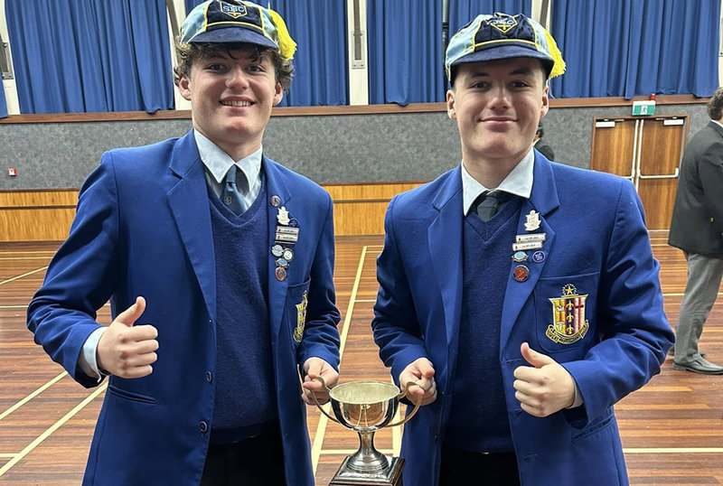 Taika and Arlo Cross with the Jim Ting Cup after their late win over Rongotai College on Wednesday.