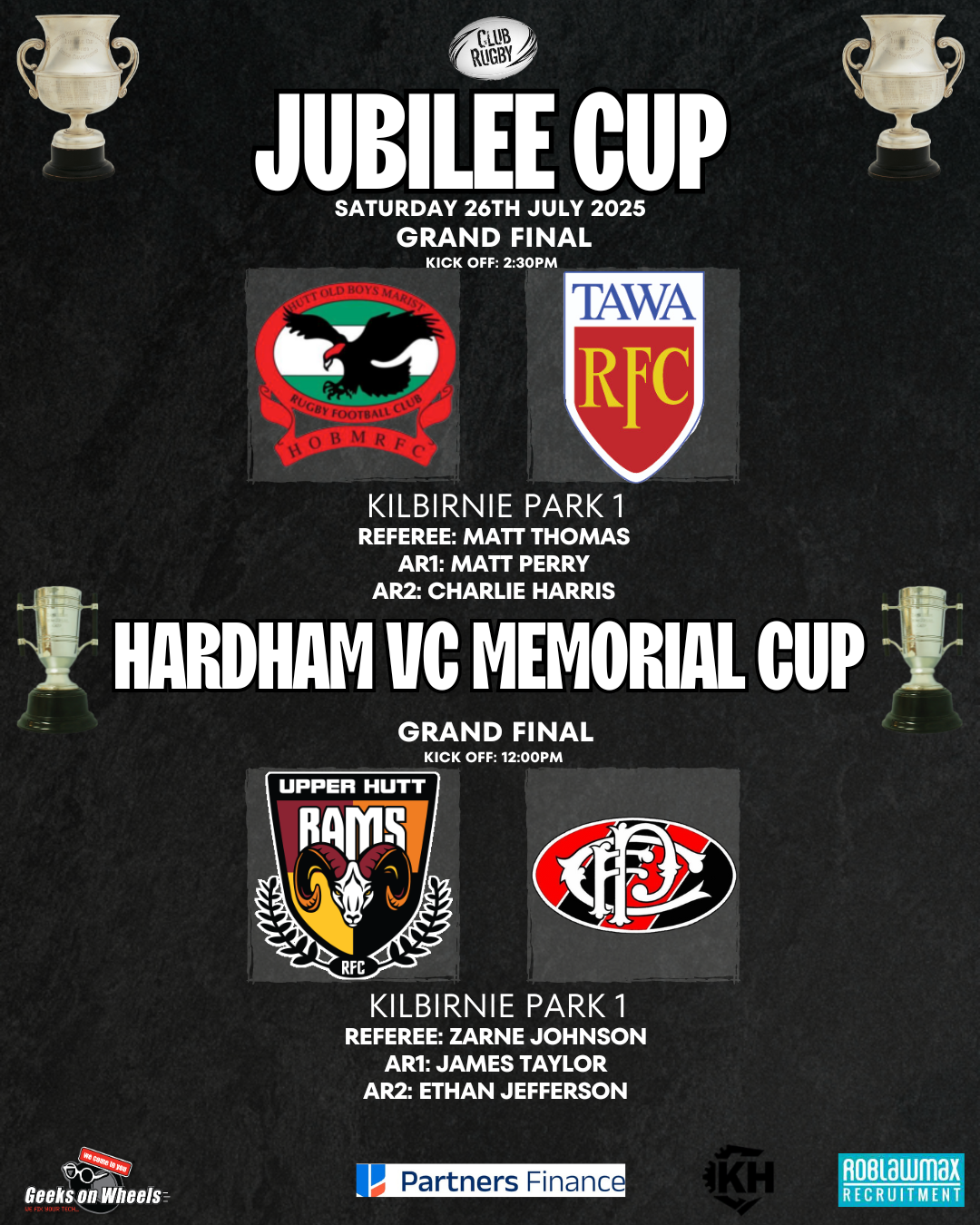 - Jubilee Cup Round 4 – Final Hutt Old Boys Marist v Tawa, Kilbirnie Park 1, 2.30pm. REFEREE: Matt Thomas.