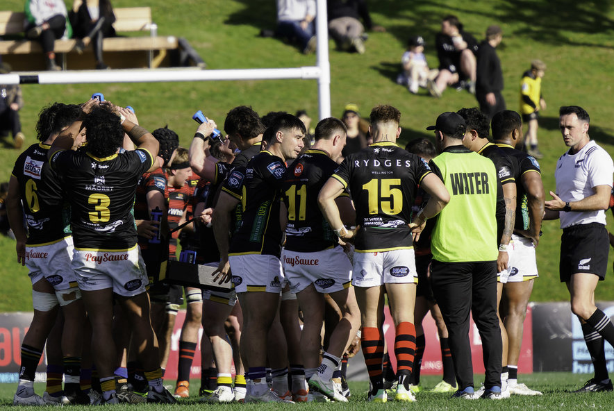The Wellington Lions taking a water break in their season opener against Canterbury. Photo: Stewart Baird.