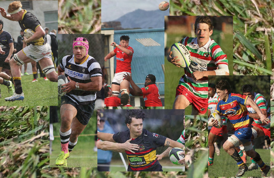 Above: Some new players that made their marks on Wellington club and representative rugby this year, from left to right: Johnny Falloon (OBU), David Leota Johnson (Ories), Preston Moananu (MSP), Sione Baker (Pare-Plim), Dom Ernst (HOBM), Luke Bidois (Tawa).