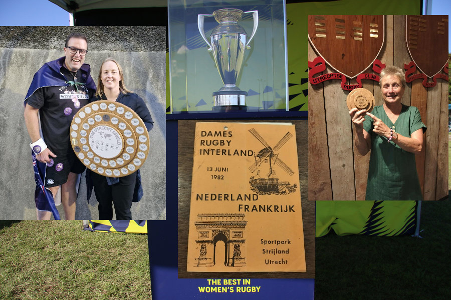 The Utrecht Shield made its appearance at the Rugby World Cup matches in Brighton during the weekend of September 6, with Algie having his son hand “I Love Women’s Rugby” stickers to security so they would let the Shield through.