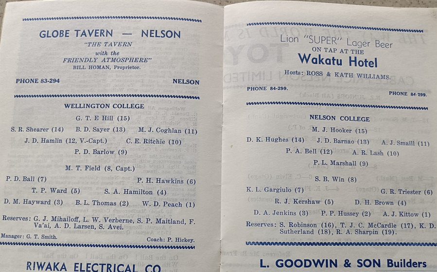 The match-day programme when Wellington College and Nelson College met in 1976.