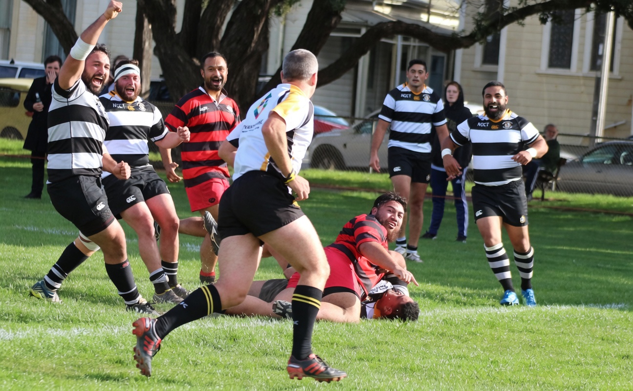 Petone was well led by its powerful front row, hooker Eugene Smith and props Thomas ‘the Tank’ Tupiavao and Adrian Barone,  No. 8 Shaun Mahoney and lock Chris Molenaar. Petone hit the lead ahead of defending champions Marist St. Pat’s, who now had a new weapon in town in the form of six-try hero Mike Kingsbeer.